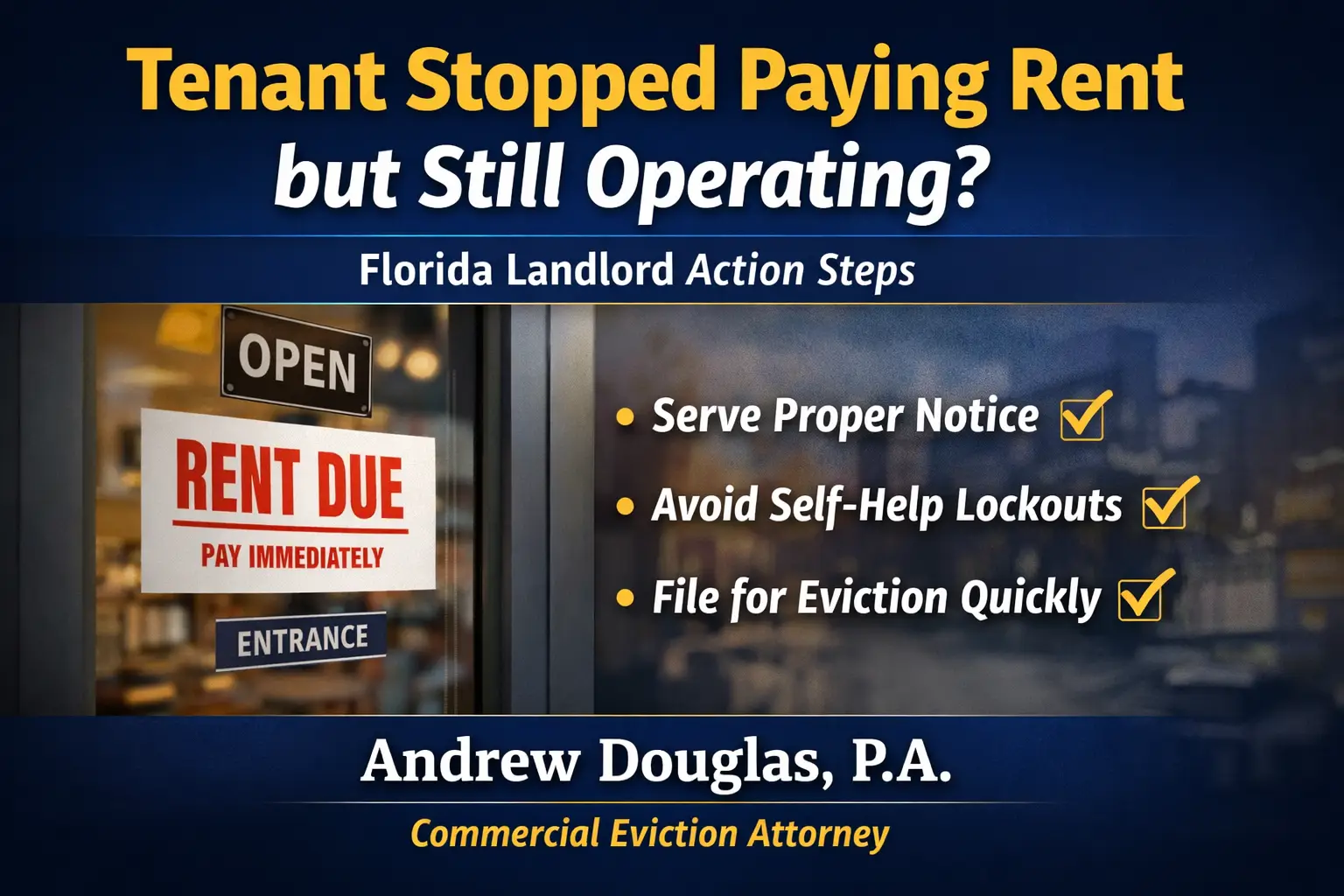 This guide is a practical action plan for Florida commercial landlords dealing with nonpayment while the tenant remains open for business.