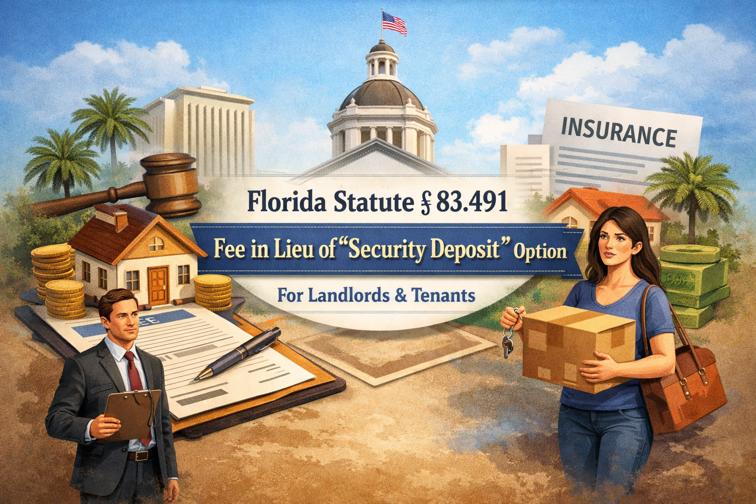 Florida law now expressly allows many landlords to offer an alternative to a traditional security deposit: a fee in lieu of a security deposit. This statute—Fla. Stat. § 83.491—sets the rules for how that option must be offered, documented, and handled at move-out, including special timing requirements when a landlord uses insurance or a surety product.